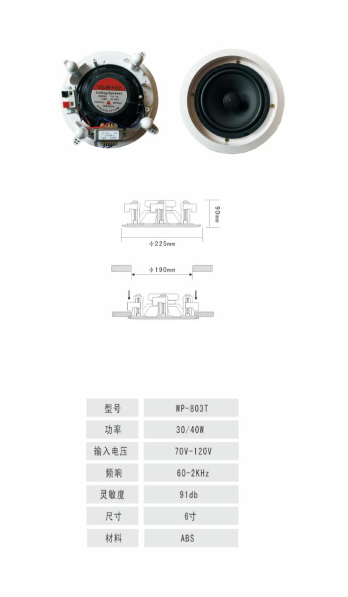 WP-803T定压吸顶天花喇叭