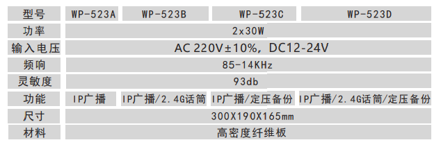 12.设有一路8欧/30W功率输出,外接定阻音箱。